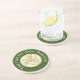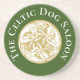 Stone Untersetzer mit individualisierbarem Text und zentrischem, faszinierendem Gold und weißen keltischen Hunden in Scheibenform auf grünem Hintergrund.