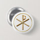 Shiny Gold Chi-Rho Symbol auf einem weißen Hintergrund. Der Chi-Rho ist ein altes Christliches Symbol, das aus den ersten beiden Buchstaben des "Christi" auf Griechisch abgeleitet ist.