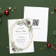 Ein weißer Hintergrund. Ein ovaler goldfarbener Rahmen aus Imitaten, verziert mit Kegeln, weißen Beeren und Kiefernwäldern. Imitate silberner Glitzer, Glitzern. Personalisieren und fügen Sie die Details hinzu. Schwarzer Text. QR-Code auf Ihrer Website für UAWG- und Party-Details.