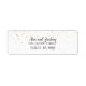 Diese Rücksendeadressen-Aufkleber aus der Goldenen Confetti-Kalligrafie sind perfekt für eine Hochzeit. Das schicke Design ist mit Imitaten aus Gold und dunkelgrauem Kalligraphie auf weißem Hintergrund gestaltet. Wählen Sie die passende Größe für Ihre Einladung und Ihre UAWG Umschläge.