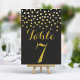 Ajoutez une touche de glamour et d'éclat à votre réception de mariage avec ces élégants numéros de table. Dotées d'un arrière - plan noir audacieux et d'une cascade de confettis dorés chatoyants, ces cartes créent un look moderne et chic. Personnalisez facilement vos numéros de table pour un cadre de table cohérent et inoubliable.