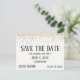 In diesem Design, Gold konfetti "fällt" von der Spitze und alle typografischen Elemente sind schwarz auf weiß. Alle Schriftart- und Hintergrundfarben können nach Belieben geändert werden. Verwenden Sie die Vorlagenfelder, um Ihre persönlichen Daten einzufügen. Auf der Rückseite wurde eine persönliche Note platziert, die den Wortlaut zu dem ändert, was Sie bevorzugen.