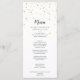 Ce menu de dîner mariage confetti en or est parfait pour une réception de mariage simple et classe. L'élégant design fantaisiste comprend des confettis de parties scintillant en faux or et une calligraphie minimaliste avec une atmosphère boho moderne.