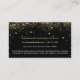 Ein schwarzer Hintergrund zeigt eine glitzernde, goldene Tiara mit Imitaten goldenen Konfetti, die von oben auf dieser Visitenkarte abragen. Diese Blingkarte kann von einem Juwelier, einem Couture-Designer, Nageltechniker oder einem anderen Schönheitsunternehmen verwendet werden. Verfügbar mit passenden Produkten.