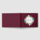 Hübsches Hochzeitsgast-Buch in Maroon, mit Grafiken von goldfarbenen Konfetti Punkte getan. Ein hübscher Blumenkranz-Textbereich, auf der Vorderseite des Buches, hat einen benutzerdefinierten Text bereit, um ihn zu personalisieren.