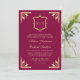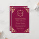 Gold Crest Monogram QR Code Magenta Wedding Einladung