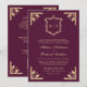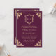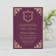 Gold Crest Monogram QR Code Plum Purple Wedding Einladung