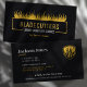 ces cartes de visite d'esthétique minimaliste et de luxe moderne sont sûrs d'avoir une impression durable. ils présentent deux graphiques personnalisés d'entretien de pelouse et de logo paysager, tous deux dans une feuille d'or métallique simulée, positionnée sur des cartons noirs, avec une typographie sans et serif alternée en or, blanc et cool platine gris argent.