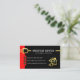 Overleaf, in a black cover, card details are on the right with the the gold logo at the top followed by the business name and its contact details.