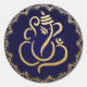 Gold Festive Ganesh | Indischer Gott Blau Runder Aufkleber