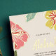 Design floral hawaïen clair et coloré, avec des détails floraux audacieux en rose, turquoise et jaune, le long de la typographie marine moderne sur un arrière - plan couleur ivoire. Ces invitations sont la façon idéale de célébrer un diplôme, un anniversaire, Luau, un jardin barbecue ou une simple fête estivale.