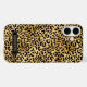 Customize this gold foil leopard print iPhone 16 plus case with your your name in a trendy modern CAP font in gold on black. It's so chic!