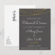 Imitats Gold Foil String Lights und handgeschriebene Skriptkohle Gray Elegant Hochzeit Probe Dinner Einladung.