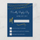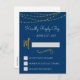 Gold Foil String Lights und handgeschriebenes Script Navy Blue Simple and Elegant Wedding UAWG Reply Card.