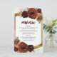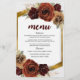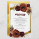 Dieses Hochzeitsmenü bietet rustikales Öl, das bordeauxrot und erdfarben Herbst Herbst Blume über Grün und Pampas Gras mit einem eleganten goldgelben Rahmen und Hintergrund.