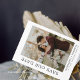 Cette élégante carte Save The Date présente un cadre doré avec un rose d'aquarelle et une branche verte comme arrière - plan modèle. Les mots "Save The Date" sont écrits en caractères noirs sur un arrière - plan blanc. Le nom, la date et le lieu du mariage du couple sont également indiqués en caractères noirs sur un arrière - plan blanc. Une photo élégante du couple est ajoutée à la carte avec leur nom et la date et le lieu du mariage écrit en dessous.