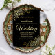 Diese schlichte und elegante Einladung zum Hochzeitsfeiern bietet goldene Schriftzeichen auf schwarzem Hintergrund. Das Design ist schlicht, aber die Ecken sind mit einer verzierten Imitat-Folie floralen Filigree mit Rollen und Falten versehen. Der Text ist formell und traditionell, aber das schicke Design macht diese Einladung für jede Hochzeit geeignet.