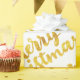 Gold Frohe Weihnachtsskriptkalligraphie auf White Geschenkpapier