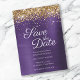Gold Funkelnd Glitzer Dunkle Violet Ombre Foil Save The Date