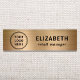 Elegantes Namensschild mit dem Logo Ihres Unternehmens oder Ihrer Organisation vor einem goldenen Imitat gebürstete metallische Hintergrund. Fügen Sie einen Namen und Titel in der einfachen modernen Typografie hinzu.