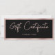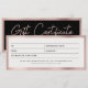 Ein wunderschönes modernes Business-Imitat Rose goldfarben und schwarz Geschenkgutschein mit schicker Schrift und Business-Logo. Dieses Geschenkgutachten-Design ist ideal für alle Arten von Unternehmen. Einfach anpassen und zu Ihrem eigenen machen.