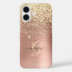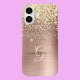 Gold Glitter, Gold Monogram, Black Script Name iPhone 16 Hülle