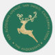 Gold Glitter Reindeer Green Return Address Holiday Runder Aufkleber
