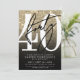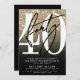 Feiern Sie mit diesem kühnen Black and Gold Glitzer zum 40. Geburtstag. Die obere Hälfte zeigt eine große weiße "40" mit einem spielerischen schwarzen Skript "40" überlagert, stehend gegenüber einem Imitat goldenen Glitzer Hintergrund, der verblasst in einem schlanken schwarzen Farbverlauf. Der Boden ist massiv schwarz mit Party-Details in weißen Sans Serif-Schriftart für ein modernes, auffallendes Aussehen. Schriftart und Hintergrundfarben sind anpassbar. Glitzer wird gedruckt, nicht echte Folie. Erhältlich als gedruckte oder digitale Einladungen.