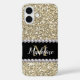 Gold Glitzer Edelsteine mit Name und Mongram iPhone 16 Hülle