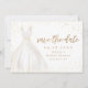Elegantes Brautparty speichern Sie die Dattelkarten mit Aquarellfarben weiße Hochzeitskleid mit funkelnden Imitaten Gold Glitzer Save the Date Drehbuch.
