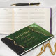 Hochzeitsgast buchen Green-Agate-Design. Dieses elegante smaragdgrüne und goldene Gästebuch von Agate Wedding ist leicht mit dem Namen der Braut und des Bräutigams und ihrem Hochzeitstag zu personalisieren.