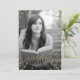 Eine moderne Abschluss-Einladung mit einem Foto Ihres Abschlusses mit Gold Glitzer Look Skript-Schrift und Konfetti. Der Rücken kann als Einladung für eine Graduiertenparty genutzt werden oder als Ankündigung genutzt werden.