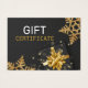 Elegantes, hochwertiges Urlaubsprojekt mit glamourösen Goldschneeflocken und Geschenkboxen auf schwarz-grauem Anthrazithintergrund. Dieses festliche Geschenkgutschein ist ideal für kleine Firmen oder für kleine Gruppen, besonders für Weihnachten.