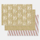 Ein Set von süßen 16 Geburtstagsparty Packpapier mit modernen Gold-Glitzer und ein Blatt personalisiert mit dem Namen des Geburtstagsmädchens sechzehn. Geben Sie den Namen ein, und es wird das sich wiederholende Muster von großem Gold 16 und "Happy Birthday" Text.