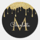 Gold Glitzer Tropfen Monogram Elegante Girly Scrip Runder Aufkleber