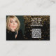 Ein vergoldetes Imitat Glitzer über schwarze Sets vor dem Hintergrund dieses Visitenkartendesigns mit Vorlagenname und Vorlagentitel auf der Vorderseite. Auf der Rückseite befinden sich ein abgestimmtes Design und Farben mit Textfeldern für den Firmennamen und Details sowie ein Foto- und QR-Code-Platzhalter. Ersetzen Sie das Platzhalter-Foto und den QR-Code durch Ihren. Füllen Sie die Vorlagenfelder aus, oder klicken Sie auf Anpassen, um den gewünschten Stil, die gewünschte Größe und Schriftart auszuwählen. Verwenden Sie den QR-Code-Link, um Kunden auf Ihre Website, Fotos, Rezensionen oder andere Links zu senden.