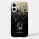 Gold-Glitzer und Monogram-weiße Skriptbezeichnung iPhone 16 Hülle