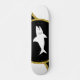 Ein Skateboarddeck mit weißem Hai auf weißem und schwarzem Hintergrund. Das Design umfasst Linien, die einen goldenen Glitzer-Look haben. (Der Glitzer ist ein simuliertes Bild und kein Glitzer mit Folie)
