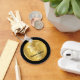 Dieses Abschluss-Jahrdesign zeichnet sich durch eine goldfarbige Graduierungskappe aus, die über einen koordinierenden goldenen Farbverlauf und einen schwarzen kreisförmigen Hintergrund konzipiert ist. Design by Holiday Hearts Designs (Rechte vorbehalten).