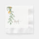 Moderner Gold und Gray Monogram Cocktail Napkin. Weiß. Combo-Schriftart. Swash. Sonnenblumen und Blattwerk.