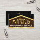 Die Dachterrasse ist mit einem handwerklichen Design ausgestattet. Das Einkapseln der Grenze ist ein goldener Streifen mit Ihrem Firmennamen "HANDYMAN SERVICE", den Sie ändern können. Auf der Rückseite, in einem schwarzen Cover, oben ist ein goldenes "Zuhause Tools" Logo, das Sie verwenden können. Danach folgen Ihr Name, die Kontaktdaten und ein Slogan, um Ihre Dienste bekannt zu machen. Eine großartige Karte für die Konstruktion und handwerkliche Themen. #handyman #homerepairhandyman #handymantools #construction #tragner #builder #remodeling #Gebäude #generaltragnant #buildingtragnehmer #zazzlemade