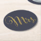 niedliche marineblaue Untersetzer mit eleganten Imitaten, goldene Folie mit Schriftzeichen, die das Wort Mrs. auf der Vorderseite zeigen. Untersetzer mit dem Wort Mr. hier verfügbar.