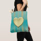 Metallisches goldenes Herz in zartem türkisfarbenem und goldfarbenem kariertem Design. Ich würde einen schönen Valentinstag oder Muttertag Geschenk machen. Teil der Gold Heart Collection von New Radiance.