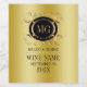 Eleganter goldener Hintergrund mit Wirblen goldfarbenen und schwarzen Rahmen für ein individualisierbares Monogramm. Individuell gestaltbare Hochzeitsweinmarke.