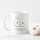 Ein modernes Monogramm bekommt Glam mit verflochtenen goldenen Hochzeitsringen mit leicht zu personalisierendem Text für Ihre Initialen, verheirateter Name und Hochzeitsdatum auf dieser klassischen weißen Tasse, was es zu einer lustigen Hausnummer oder zu einem Jubiläumsgeschenk für die Neuvermählten macht.