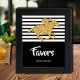 Derby Party Gastgeschenks Papier Plakatzeichen - INSTANT DOWNLOAD und/oder PRINTED - bietet ein Imitat Gold Glitzer Racehorse auf schwarz-weiß Streifen mit Ihren Party-Details in schicken Schriften. PASSENDE Artikel in unserer Sammlung.