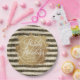 Happy Holidays in schicken, weißen Schriftzeichen auf einem Pflückchen Goldfolie aus Imitat, diese Teller aus Papier verfügen über einen Hintergrund moderner Goldkrüge über schwarz-weiße Streifen und Goldtöne. Personalisiert mit deinem Namen. PAPIERE-Teller und weitere Designs in unserem Shop.