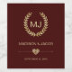 Eleganter Lorbeerkranz mit goldenem Folienhorn auf dunkelrotem Hintergrund