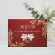 Gold Leaves Frame on Ruby Red RSVP Card featuring an elegant ruby, red background with a frame of gold leaves on the front and the back has gold ribbon border with a white background. The back has details for the recipient to fill out. Designed to coordinate with the "Doves, Heart & Gold Leaves" Wedding Collection. To change details, click «Personalize». To move the text or change the text size, font, or color click «Click to customize further»