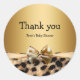 Gold & Leopard Print Bow Chic Glam Animal Print Runder Aufkleber